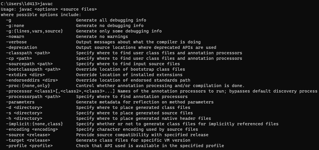 - javac : java코드를 바이너리 파일인 .class으로 컴파일할때 사용하는 명령어