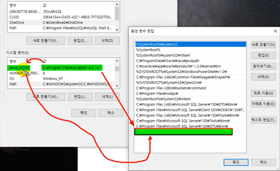 새로 만들기(N) -> %JAVA_HOME%\bin 설정