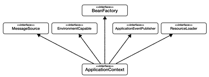 - BeanFactory가 기본적인 빈 관리 및 조회 기능만 제공한다면, ApplicationContext는 훨씬 다양한 부가기능들을 상속받는다.