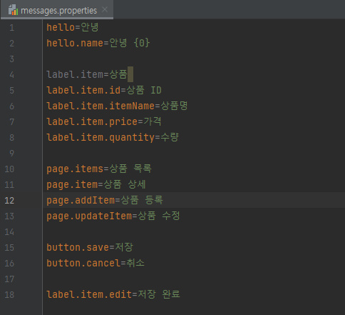 예시 : message.properties - 메시지 관리 파일 생성한다
