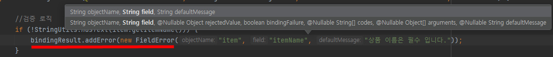 bindingResult.addError(new FieldError("item", "itemName", "상품 이름은 필수 입니다."));