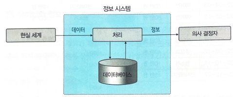 - 정보 시스템 : 조직을 운영하기 위해 필요한 데이터를 수집하여 저장, 필요할 때 유용한 정보를 만들어주는 수단