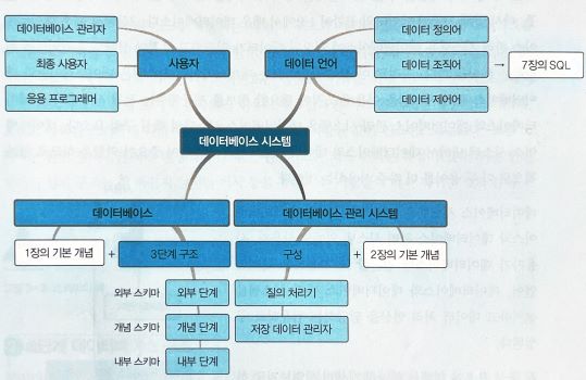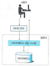 - 사용자, 데이터 언어, 데이터베이스 관리 시스템, 데이터베이스, 컴퓨터로 구성된다.
