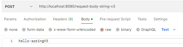 INFO 25304 --- [nio-8080-exec-2] h.s.b.r.RequestBodyStringController : messageBody=hello-springV1